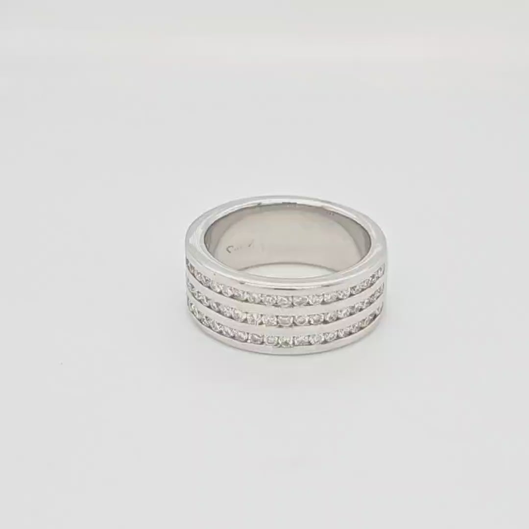 This stunning eternity ring is made up of a total of 0.88ct diamonds over 3 channels, set in 18k white gold.